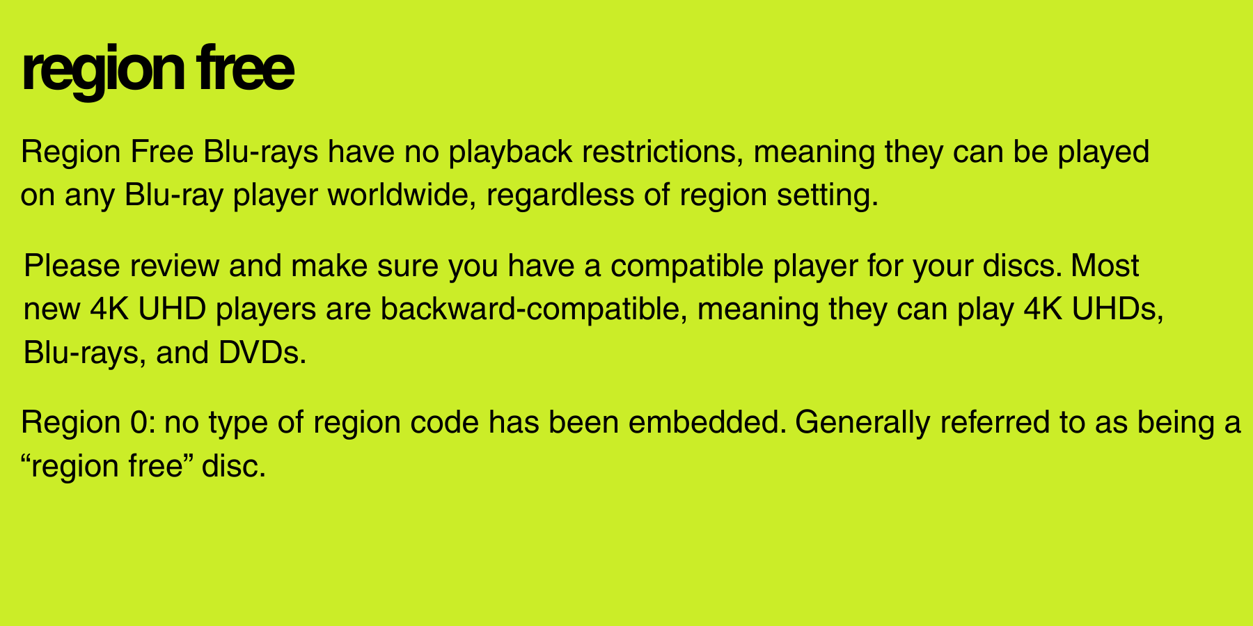 All sales are final and we do not offer a return or exchange service. Please review the region code FAQ/store policy before purchasing to ensure your player is compatible with the disc.
